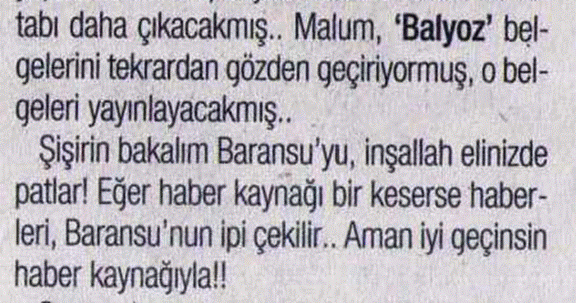 Bize öyle görünüyor ki bu “okuyucu,” Baransu’ya şöyle bir mesaj veriyor: