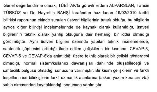 3. TÜBİTAK’in ilk raporu ve Askeri bilirkişi raporu arasındaki bir kısım çelişkilerin ve farklı tespitlerin farklı uzmanllık alanlarına (askeri yazım kuralları vb) sahip olmasından kaynaklanıyor.