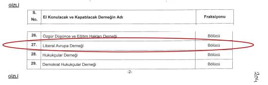 El konulacak ve kapatılacak dernekler arasında 27. sırada “Liberal Avrupa Derneği” var.