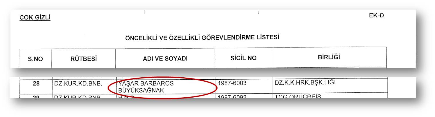 Bir de Amiral Listesi1.xls excel dosyası içinde adı “Tuğamiral” rütbesiyle Barbaros Büyüksağnak olarak geçiyor (Bu belge ise üst verilerine göre 18.12.2000’de oluşturulmuş, en son Oramiral Özden Örnek tarafından 17.10.2002’de kaydedilmiş).