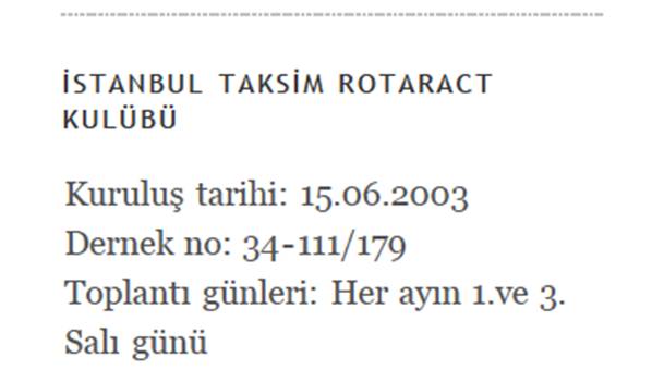 Oysa o tarihte Taksim Rotaract Kulübü Derneği yok. Bu dernek belge yazıldıktan 6 ay sonra, 15 Haziran 2003’de kuruluyor.