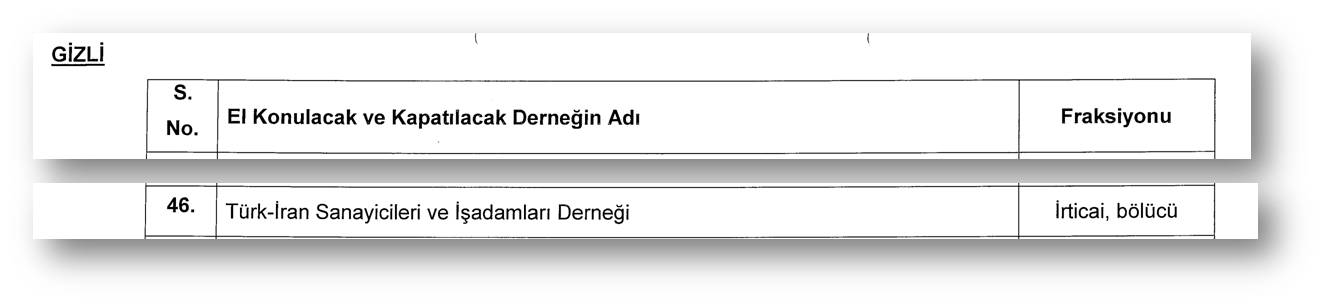 Bu dernek 2002 senesinde “Türk-İran İşadamları Derneği” olarak kuruluyor, ve bu Balyoz belgesinin (sözde) son kaydedildiği tarihteki (24 Şubat 2003) adı da bu.