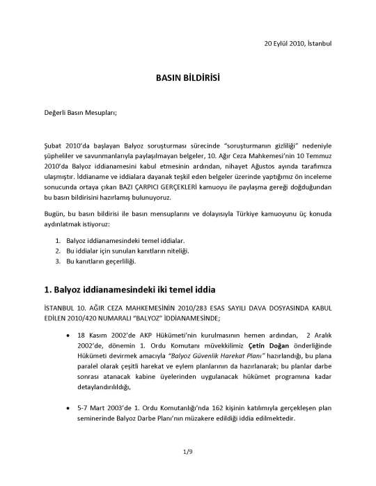 Çetin Doğan’ın avukatları Celal Ülgen ve Hüseyin Ersöz’ün dün Balyoz davası ile ilgili sundukları ve aşağıda ilk sayfasını göreceğiniz basın bildirisinin tam metnine buradan, eklerine ise buradan ve buradan ulaşabilirsiniz.