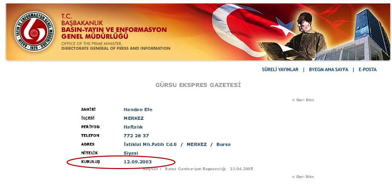 Yine 11 no.lu “Balyoz” CD’sinden… EK-D BASIN YAYIN ORGANLARI 29.01.03.doc isimli belgenin üstverisine bakacak olursak, son kaydedilme tarihi 31.01.2003, yani haftalık Gürsu Ekspres Gazetesi kurulmadan 7 ay öncesi.