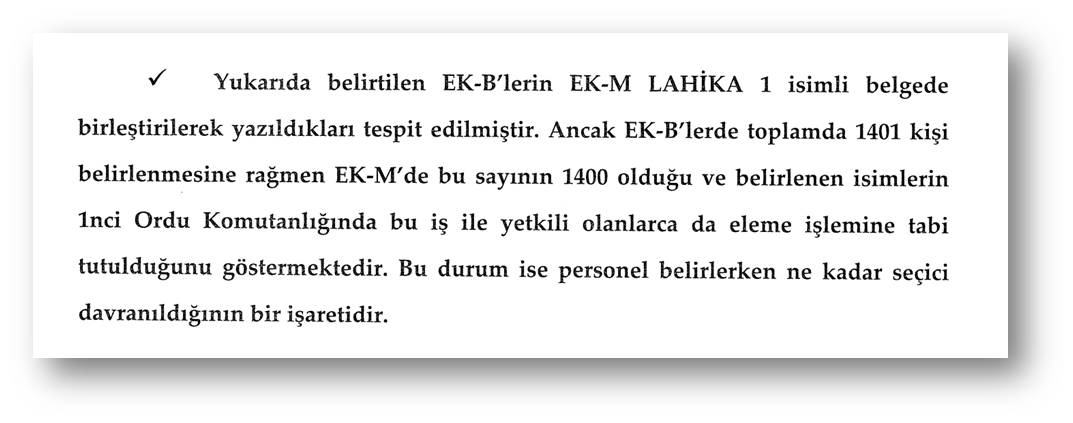 - Yine aynı CD’deki bir word belgesinde, EK-M Lahika 1’de, bu listelerin birleştirilmiş hali var, ve bu listede ise toplam 1400 kişi var.