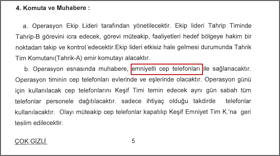 Carsaf planinda “emniyetli cep telefonu” kullanilacagi belirtiliyor. Linkini verdiginiz TUBITAK dokumaninin ise hic bir yerinde “emniyetli cep telefonu” gibi bir ifade gecmiyor, gecen ifade “kripto ozellikli cep telefonu”. Bu iki ifadenin ayni ozellige denk geldigine dair kanitiniz nedir? Carsaf planinda “kripto ozellikli cep telefonu” veya TUBITAK dokumaninda “emniyetli cep telefonu” gibi bir ifade var mi? Eger yoksa, farkli ozellikleri ayniymis gibi algilamis olabilirsiniz. Emniyetli cep telefonu kriptolu cep telefonu olmayabilir.