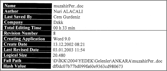 Belgeyi hazırlamış gibi görünen Nuri Alacalı 29.07.2002-20.06.2003 tarihleri arasında kesintisiz olarak yurtdışında (ABD’de War College’da eğitimde); bu tarihlerde böyle bir belge hazırlamış olamaz.