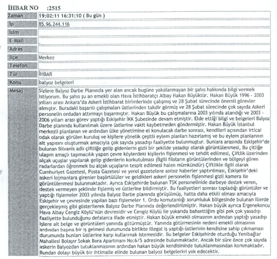 2003-2006 tutarsızlığına diğer konuda ben de dikkat çekmiştim. Ama bu ihbar mektubunda daha dikkat çeken bir tarafı var bence… Emniyete adeta neler bulacakları ve neleri arayacakları dikte ettirilmiş. İhbar mektubu fazlasıyla detay içeriyor. Sanki Albay Hakan Büyük’ün evinde yaşayıp flash diskini dilediğince kurcalayabilen biri tarafından ihbar yapılmış.