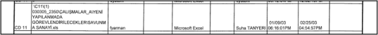 SAVUNMA SANAYİ.xls excel belgesi Baransu’nun bavulundan çıkan 11 no.lu CD’de kayıtlı. Aynı belge Gölcük’ten çıkan 1 no.lu CD’de de var.