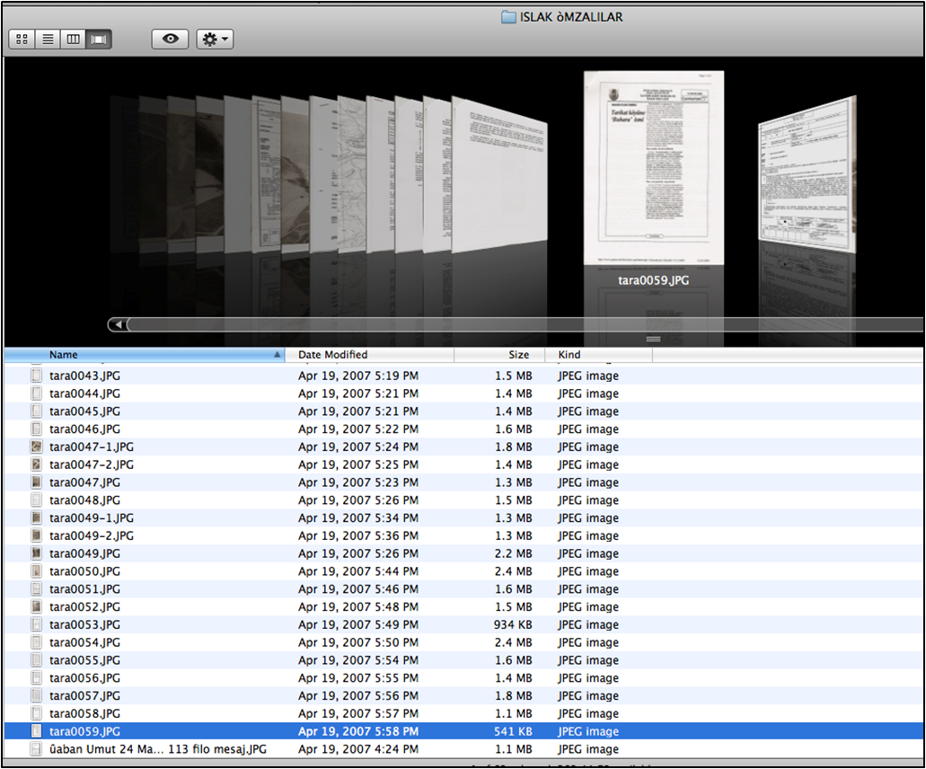 JPG dosyalarını tek tek açıp içine baktığınızda, taranan belgelerden en eskisinin tarihinin 7 Nisan 2003 olduğunu görüyorsunuz. Onun dışında, 2004, 2005 ve 2006 tarihli belgeler çoğunlukta.