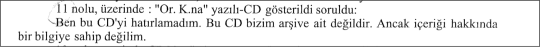 “‘K.Ozel’ yazili CD’ye de hatirladim, bu CD’yi de yine komutana ozel olarak verilmek uzere hazirlamistik”