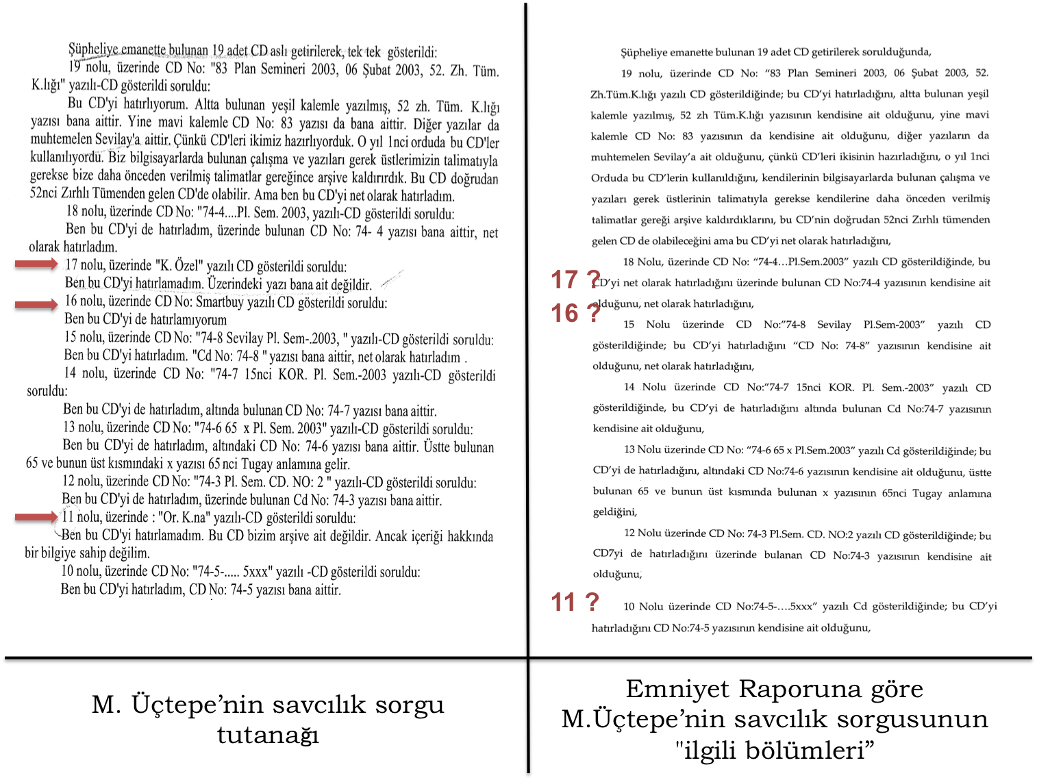 Asıl soru, içerisinde balyoz dokümanları olan 11 ve 17 numaralı CD’lerin sivil memurların bahsettiği CD’ler ile aynı olup olmadığı.