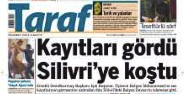 Taraf’ın dünkü manşeti “Kayıtları gördü Silivri’ye koştu” idi. Koşaner Balyoz davasını izlemeye gitmiş olsaydı dahi, Taraf’ta bunun haber yapılış tarzı ve Koşaner’e atfedilen niyet, Taraf’ın misyon gazeteciliğini gayet güzel yansıtıyor.
