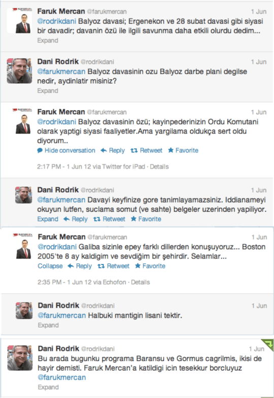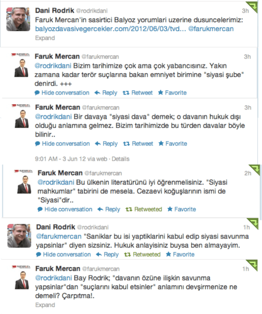 Dani Bey, Faruk Mercan’in daha önceki yazdiklari ve ciktigi programlarda söylediklerine dikkat etseydiniz aslinda kendisiyle bu kadar yazismaya degmeyecek, somut olgular karsisinda ancak kakafoni yapabilen birisi oldugunu görürdünüz. Bu adamcagizin kapasitesi bu kadar. Ortada bir iddianame ve somut olarak yüklenen bir suc var ise ve suclamaya teskil eden delillerin sahteligi bir degil iki degil 132 kere ispat edilmis ise ve sizin karsiniza cikan ve kendine kanaat önderi, köse sahibi denilen birisi “bunlar teknik ayrintidir, uzmani degilim” diyor ise aslinda söylemek istedigi “Türkce okumayi, rasyonel düsünme ve temel mantik cikarimlarini bilemiyorum” demektir.