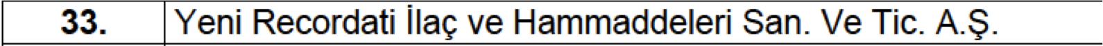 (1) İlk belgede 33ncu sırada yer alan Yeni Recordati İlaç ve Hammaddeleri San. Ve Tic. A.Ş., 2003 yılında yok. 2003 yılında mevcut olan firmanın adi Yeni İlaç. Bu firma Ekim 2008’de İtalyan Recordati firması tarafından satın alınıyor ve firmanın adı Temmuz 2009’deki genel kurul kararı ile Yeni Recordati İlaç olarak değişiyor. 2003 Ağustos’unda emekli olan Kubilay Aktaş’ın 2003’de bunu öngörüp 2003 tarihli belgeye böyle yazmasına, belgenin son kaydının 4 Şubat 2003’de yapılmış olmasına imkan yok.