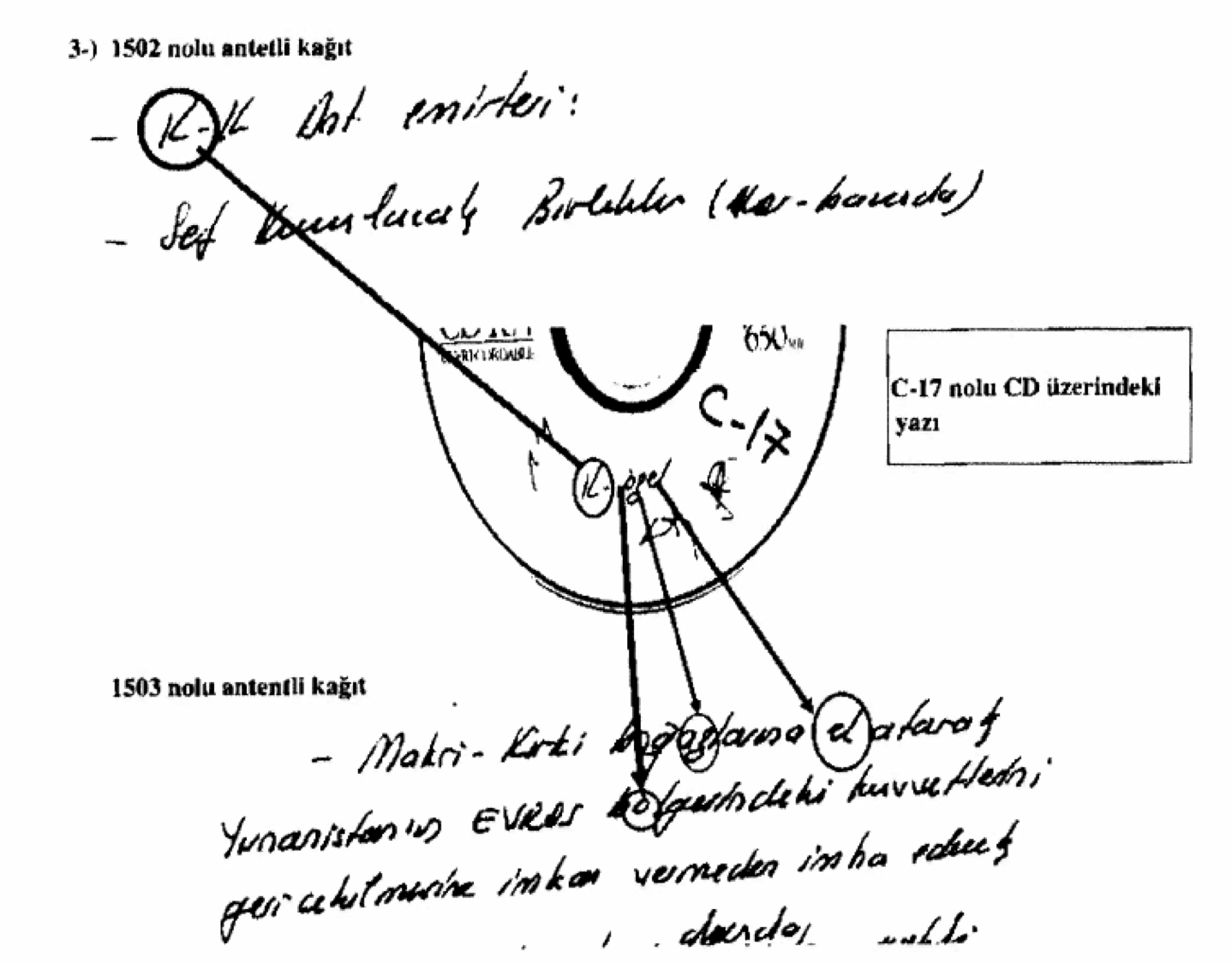 “(…) 11 ve 17 no.lu CD’ler üzerinde “Or.K.na” ve “K.özel” yazısını oluşturan harf ve karakterlerin birer birer ve orijinal sayfaların yakarıda işaretli yerlerden bir yazılım vasıtasıyla alınıp birleştirilerek CD üzerine bir yazıcıya dik bağlı bir kalemle oluşturulduklarının delilleri ilk rapora ek olarak teyiden elde edilmiştir.”